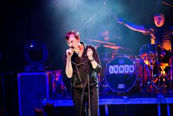 Народу в зале прибавляется — человек 400 уже точно есть. В зале появляются первые девушки с пивом в руках. В стаканчиках — трубочки, всё как надо. А вот и первые женские крики с названием выступающей группы. Они произносят его с буквой «э» — тоже как надо. Кто-то уже в толпе показывает «козу» — концерт скоро начнётся, не иначе. И действительно, в начале девятого «Lumen» появляются на сцене — ненадолго вчетвером, а через минуту после тёплого приёма зрителей выходит и Рустем Булатов — лицо коллектива. Начинают ребята с пени «Прости». Начинают уверенно, да и залу всё, кажется, нравится. Раздумья по поводу того, как публика примет акустику, моментально исчезают — зал готов к такому концерту. Фронтмен здоровается, обещает песни с нового альбома, хиты, и группа снова приступает к программе.