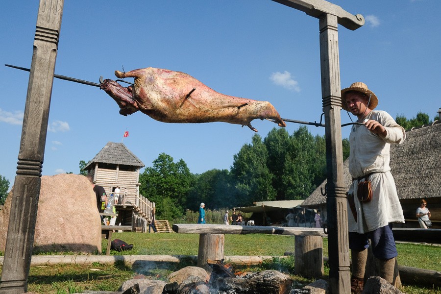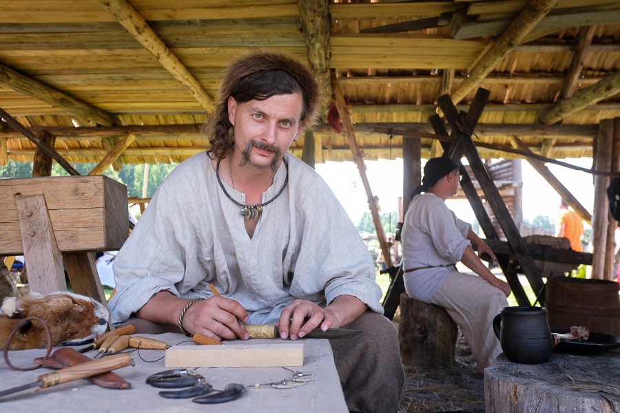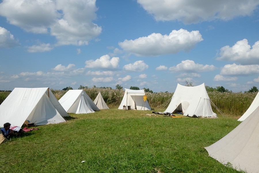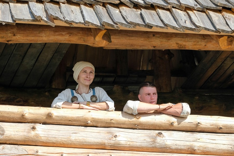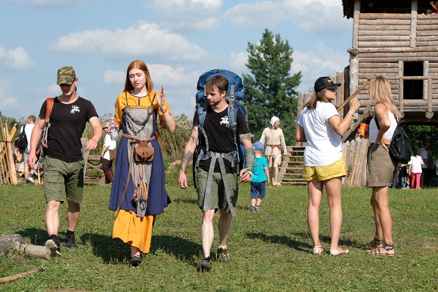 В историческом лагере отдыхают реконструкторы раннего средневековья и организаторы фестиваля «Кауп», который пройдёт под Романово в середине августа. У них вся суета ещё впереди, так что сейчас они просто наблюдают за коллегами-реконструкторами. Конкуренции между клубами и фестивалями как таковой нет. Во-первых, эпохи разные, во-вторых, места хватит всем, и черед две недели тем же на «Каупе» будут заниматься ребята из «Западной башни». А самое прекрасное, что отменить «Ушкуй», как это случилось с «Гумбинненским сражением», власти не смогут. Потому что не имеют к его организации никакого отношения.