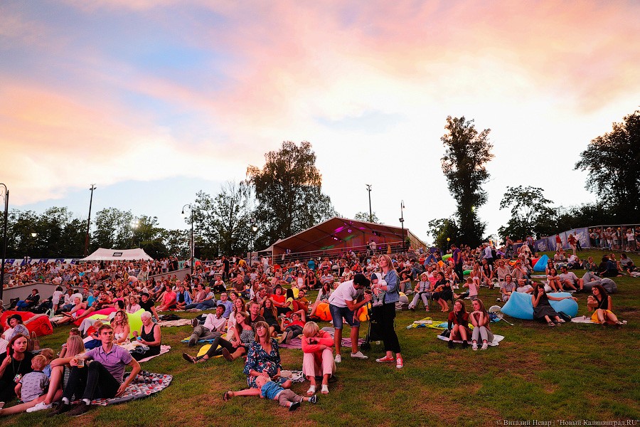 Абонементы «без места» по минимальной цене в 1500 рублей в этом году, как и в прошлом, разлетелись очень быстро. Одним из визуальных следствий этого можно считать практически полностью застеленный пледами и ковриками газон фестивальной площадки. Найти свободный клочок незанятого пространства, придя ко второму концерту было довольно сложно не только в финальный день фестиваля, но и в день его открытия. А ключевым словом «Калининград Сити