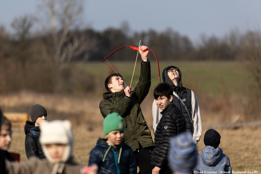 В средневековом городище Ушкуй в субботу было громко. Впрочем, в день весеннего равноденствия тут всегда так, потому что главная задача всех, кто встречает весну с жителями рукотворного Средневековья, — прогнать зиму и разбудить хозяина местных лесов, медведя. Начался праздник с пения народных песен и славящих солнце хороводов, шуточных битв на мешках и игры в челнок. Далее посетителям городища продемонстрировали ещё один весенний славянский обряд, который обычно проводили в последний весенний праздник — Благовещенье Пресвятой Богородицы.