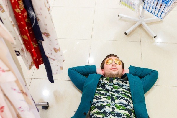 Тем временем в магазине появились покупательницы, за ними проследовали ещё и ещё — по цепной реакции. Показательно поведение спутника одной из клиенток — он даже через порог переходить не стал и остался наблюдать за всем процессом снаружи. Но хватило его ненадолго — время тянулось, видимо, крайне медленно, и мужчина всё же прошёл внутрь, сел в кресло читать журналы, среди которых, как мне объяснила одна из девушек-консультантов, специально есть «мужские» издания вроде «Maxim» и «GQ». Спутница же, казалось, хочет остаться в магазине навсегда. Я и сам за это время успел позвонить фотографу, проверить Facebook* и выпить чашку кофе. Но тут женщина расплатилась и взгляд мужчины резко изменился — с недовольного на радостный. У него было лицо счастливого рыбака, поймавшего «вот такую вот» рыбу.