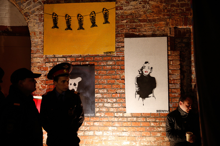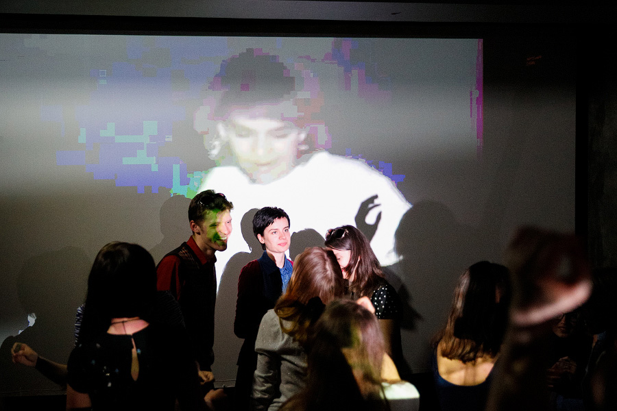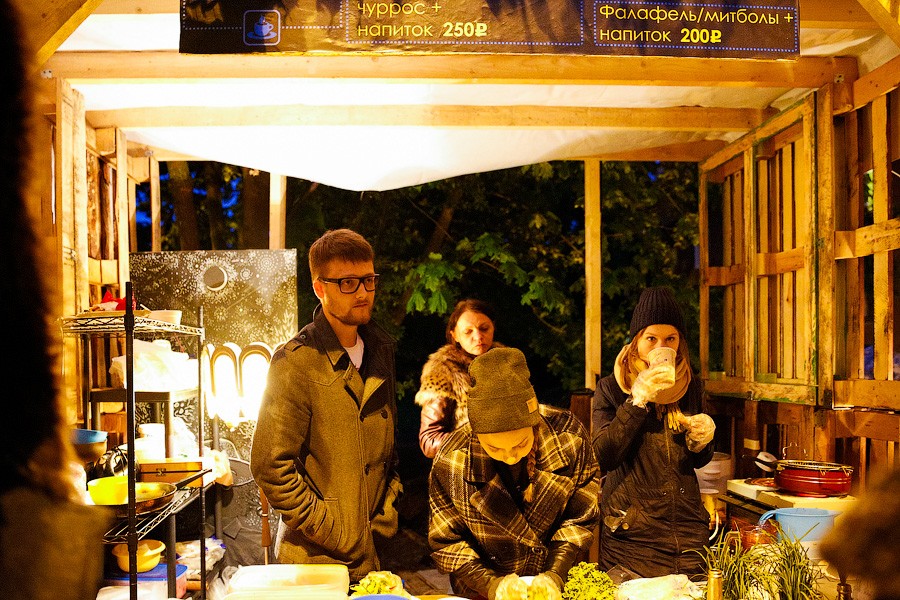Мы общаемся с одним из организаторов сегодняшней экспериментальной выставки, которая называется «Игра в сеть», Егором Лучшевым; он объясняет нам, что есть что, рассказывает о планах на ближайшее будущее и признаётся, что процесс подготовки ему интересен куда больше, чем готовый результат. Мы смотрим на часы и понимаем, что нам пора, покупаем у кулинаров за 150 рублей фалафель, по дороге на остановку понимаем, что эта вкусная вещь — вегетарианская. Все троллейбусы, проезжающие мимо, идут в депо. Гулять так гулять — вызываем такси.