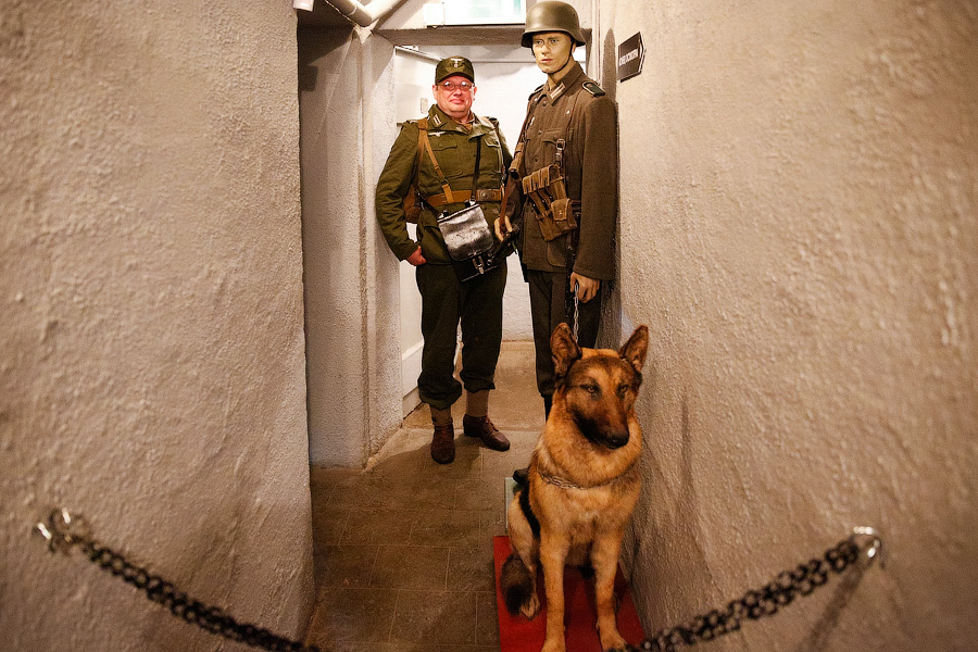 К назначенному времени у музея «Блиндаж», над входом в который почему-то красуется вывеска с другим названием — «Бункер» — скопление людей. Примерно половина из них — в военной форме и с оружием. Это реконструкторы. Кто-то марки почтовые коллекционирует, кто-то пластинки виниловые собирает, а кто-то по выходным развлекается посредством воссоздания военных сражений. «Да у них только форма тысячи четыре евро стоит!» — замечает фотограф и оказывается недалёк от истины: переодетые в немецких солдат ребята действительно выглядят «по фирме», а антуража добавляет то, как они курят: сморщившись и придерживая сигарету в большом и указательном пальцах ладони — как военные в телесериалах, в общем.