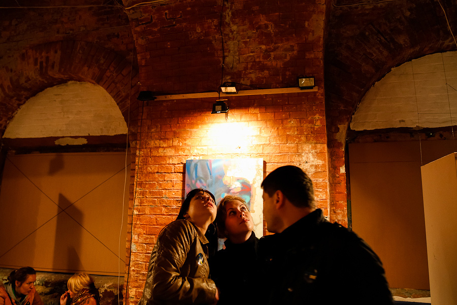 В «Воротах» громко играет музыка, но никому не мешает; сидячих мест хватает далеко не всем, но это не препятствует всеобщему общению; то, что не все друг друга знают — тоже не страшно, познакомиться можно запросто с кем хочешь. Среди интерьера внутри — пианино, диваны, торшер, ковры — предметы домашние, но никак не музейные. Кураторы пространства потрудились и прилично подлатали немецкое помещение — с момента последнего нашего посещения здесь многое поменялось. «Может, тут и останемся? И никуда уже не пойдём?» — предлагает напарник, подтверждая мои собственные мысли о том, что здесь праздник вполне получился.