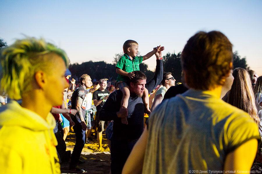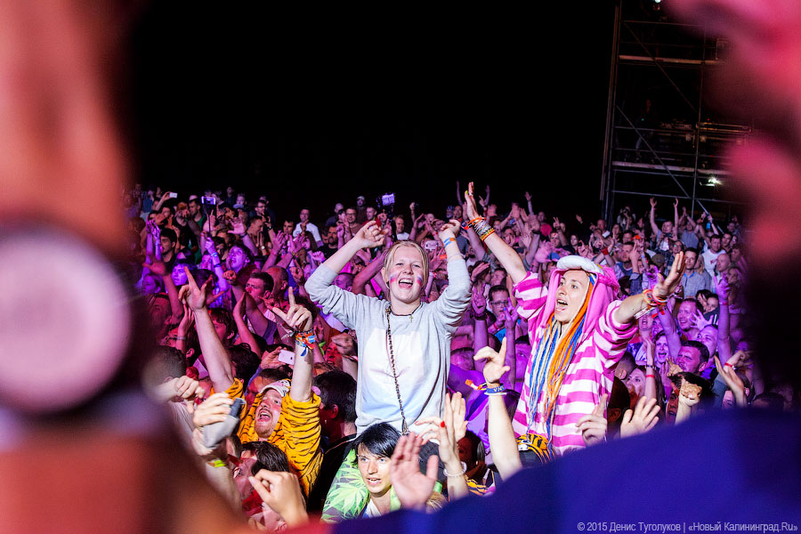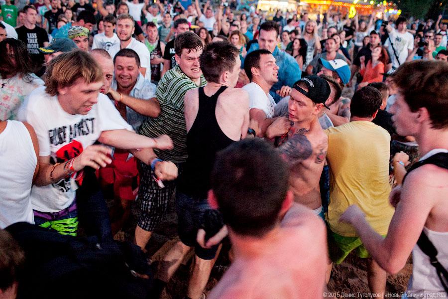 «Горите там в аду потихоньку!» — за несколько минут до начала фестиваля не попавшие на него «кубаноиды» с завистью обращались к более удачливым соратникам в социальной сети «ВКонтакте». «Здесь как-то немноголюдно»; «В Веселовке (посёлок в Краснодарском крае, неподалёку от которого раньше проходил фестиваль — прим. „Афиши Нового Калининграда.Ru“) и то народу больше», — писали об отсутствии публики на площадке другие пользователи. Участникам стотысячного сообщества можно верить как надёжному источнику — они объявили об отмене события в Калининграде раньше журналистов, а продюсер Илья Островский для них — ньюсмейкер, сравнимый с Путиным для «Первого канала» и Милоновым — для «Лентача». Не врали они и в этот раз: на рижской площадке было действительно катастрофически мало людей, фуд-корт пустовал, можно было по пальцам пересчитать тех, кто у сцены наблюдал за обратным отсчётом до старта концертов.