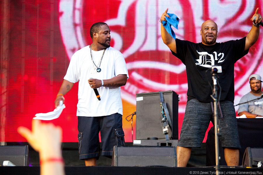 Услышав песню из второго альбома Эминема, интернациональной компании (латыши, москвичи, калининградцы) пришлось остановить хвалебную речь в адрес «Кубаны» (по их мнению, Риге как раз не хватало шумной тусовки в центре города), чтобы выяснить, не приехал ли вместе с группой «D12» и сам белый рэпер. Похоже, о нём вспомнили не только наши собеседники, но и все остальные ринувшиеся к сцене. Никакого Эминема там, само собой, не было. Ещё больше людей подтянулось во время выступления ню-металлистов из «Skindred», темнокожему лидеру которых удалось раскачать толпу дня вплоть до трюков типа «сели-подпрыгнули» и громкого «make some noise». Однако во время выступления утончённых исландцев «Gus Gus» на площадке стало пусто — их лайв напоминал закрытие пляжного рейва рано утром — неторопливое, расслабленное, но малочисленное.