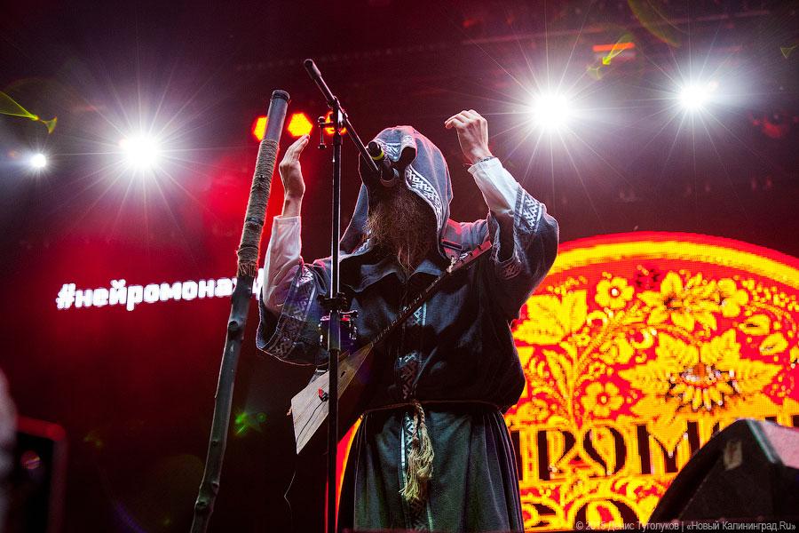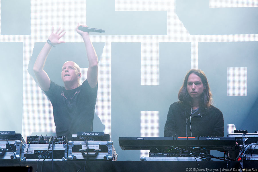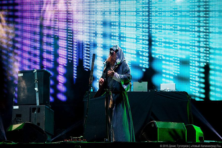 Не заработал звания главной звезды четверга и «Нейромонах Феофан» — бородатый молодой человек то ли в безразмерной косоворотке, то ли в балахоне, с посохом и репертуаром про Русь-матушку под зубодробительный драм-н-бейс. По сути, настоящий хедлайнер четверга — это Илья Островский, которого принимали, как героя, победившего космические трудности. «Спасибо, что добрались, несмотря ни на что», — поприветствовал продюсер зрителей со сцены, то и дело переходя с русского на латышский.