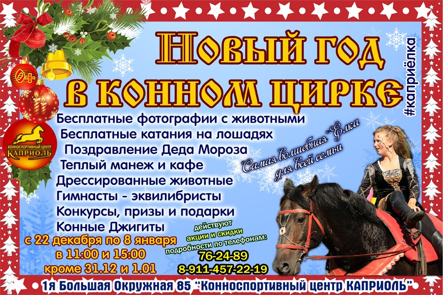 Наша программа состоит из двух отделений с антрактом, во время которого вы сможете посетить наше кафе с горячими напитками и вкусной едой и бесплатно покататься на пони или лошадке, а также сфотографироваться на память.