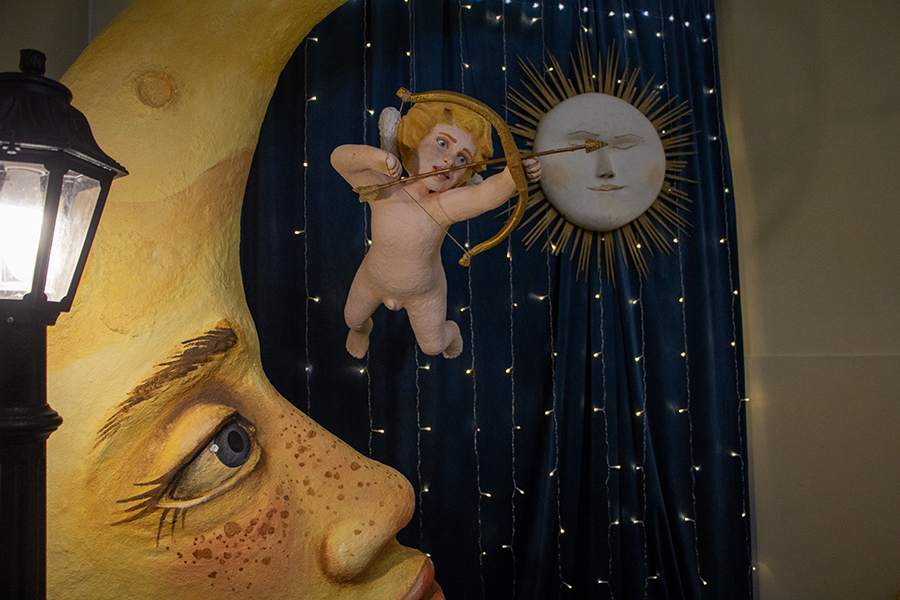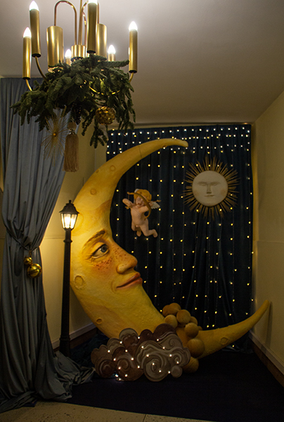 На входе в музей посетителей встречают полумесяц, символ цикличности времени, ухода всего старого и прихода нового, и путти — ангелочек, посланник Нового года. Всё это на фоне звёздного неба и спящего солнца.