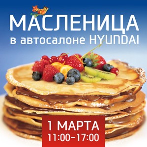 Всеми любимый весенний праздник Масленица в этом году совпадает с первыми днями весны. Приглашаем вас отпраздновать его с весёлыми забавами и вкусным угощением в просторном празднично оформленном помещении дилерского центра Hyundai «Динамика». Празднование состоится в субботу, 1 марта, и продлится с 11 до 17 часов!
