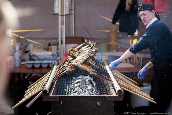 На праздник вышли разные кафе и рестораны: самая большая площадка у группы компаний «Табаско» (впрочем, неудивительно, это условно «селёдочное» меню они как минимум за неделю стали отрабатывать, и в том же «Борще и сале» можно было встретить специальный листок, в котором значилась рыбная закуска «Закусон», форшмак и так далее); есть светлогорское кафе «Белый кит», в котором