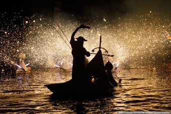 — Это место было огорожено. Мы просили, чтобы там никого не было. Мы никогда не рискуем человеческой жизнью. Мне кажется, люди просто не поняли всю серьезность происходящего. Только мы можем представить себе, насколько это опасно. К сожалению, не только финал, но и вся вторая часть спектакля была слабее, чем мы это делаем обычно. Вторая часть построена на гармоничном сочетании фейерверков с берега, огней, которые горят на воде, и актерского исполнения. У нас нет специального освещения — это ведь не сцена. Поэтому мы создаем специальный дымовой эффект: дым рассеивает и отражает свет — создается иллюзия сценического света, таким образом мы освещаем актеров.