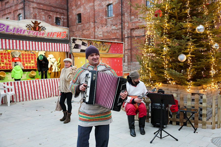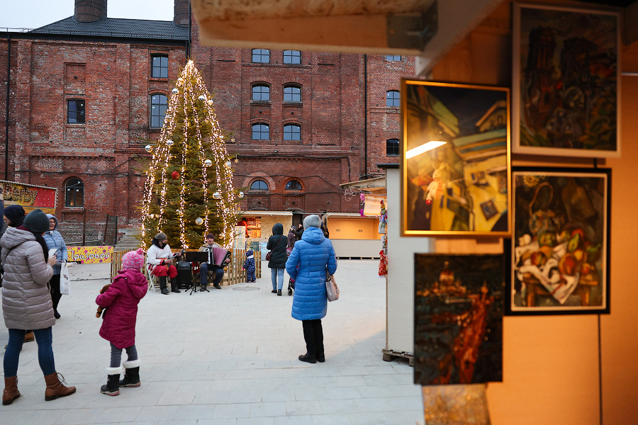 Семенящая с остановки на ул. Судостроительной женщина с подозрением смотрит на «Понарт», неожиданнно обросший светодиодными гирляндами и каким-то броуновским движением. «А что здесь происходит?» — обращается она к прохожим. Те объясняют, что открылась новогодняя ярмарка, сами вот случайно зашли по пути домой. Из колонок звучит неизбежное Let It Snow в исполнении Фрэнка Синатры, во внутреннем дворике бывшего пивоваренного завода — более «патриотичные» гармонь и балалайка (правда, играют музыканты и «Калинку», и Deep Purple, и Queen).