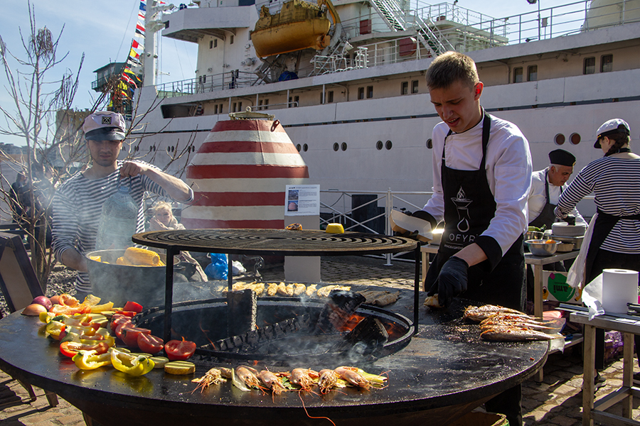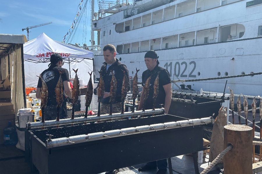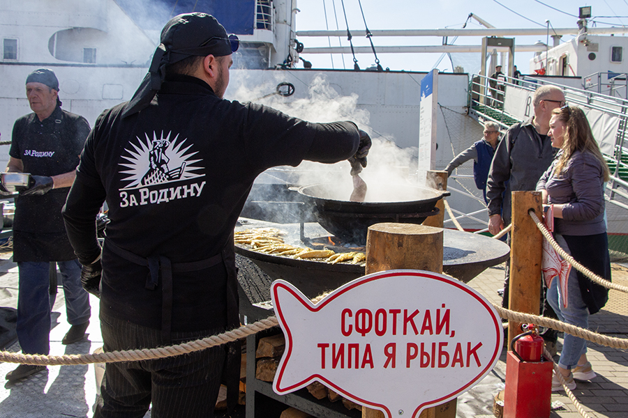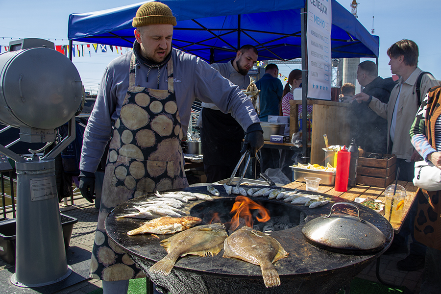 Помнится, в 2006 году, когда рожденная в недрах Музея Мирового океана идея празднования Дня селедки только начинала овладевать массами, звучало немало скептических голосов. Дескать, да придумка неплохая, но не очень серьезная. Как и сама рыба — селёдка. Но прошло больше 20 лет, и День селедки стал одним из главных городских праздников, чем-то вроде большого, общекалининградского пикника. Причины, в общем-то, лежат на поверхности. Во-первых, трудно представить себе более народную рыбу, чем селёдка, во-вторых, Калининград, можно сказать, начинался с неё. Знаменитые сельдяные экспедиции, первая из которых отправилась в Атлантику в далеком 1948 году, заложили основу местной рыбной промышленности, ставшей надежной опорой региональной экономики. Ну, а в-третьих, людям всегда хочется праздника. Именно поэтому внушительная очередь у рамки металлоискателя, что была установлена близ плавучего маяка «Ирбенский», выстроилась уже к часам десяти утра. Пока готовилась официальная часть, народ развлекали массовки-затейники, которые проводили разного рода конкурсы. Например, добровольцы соревновались в чтении рэпа про селёдку. В батле сошлись несколько исполнителей, которые придумали себе такие псевдонимы: Килька, Скумбрия, Дон Кит, МС Планктон. Первое место, впрочем, не досталось никому. Победила, как водится, дружба.