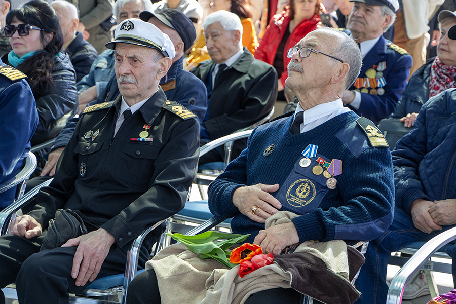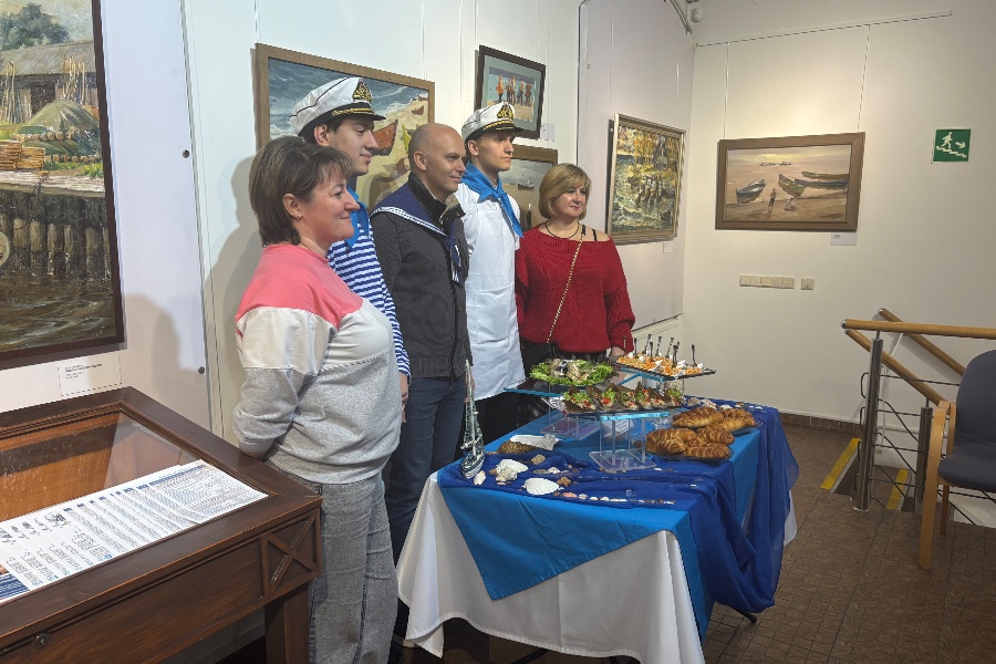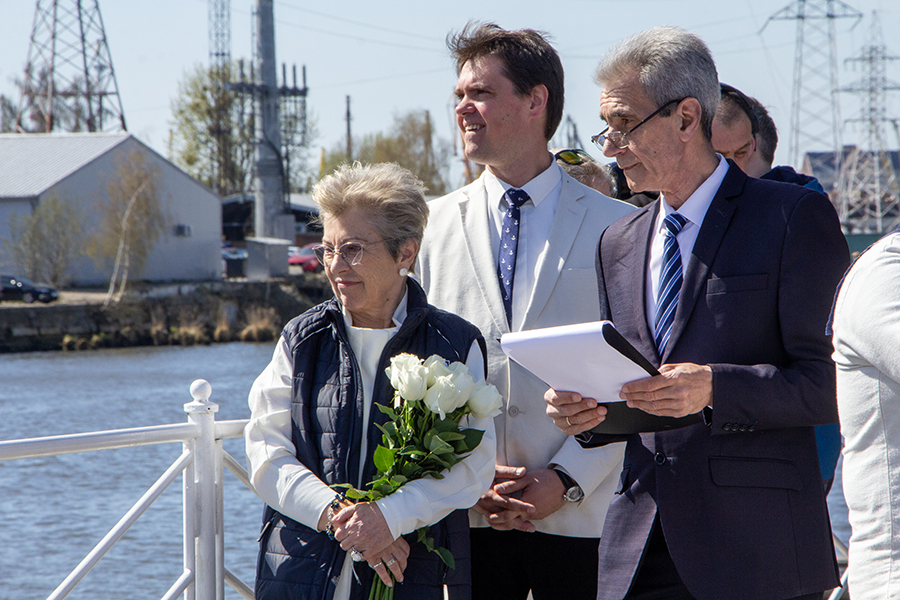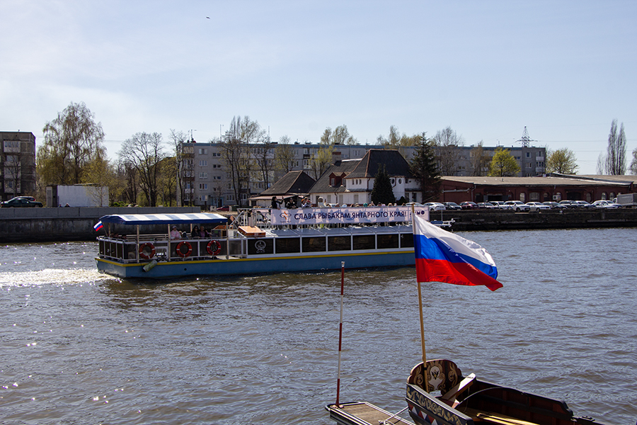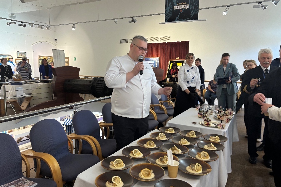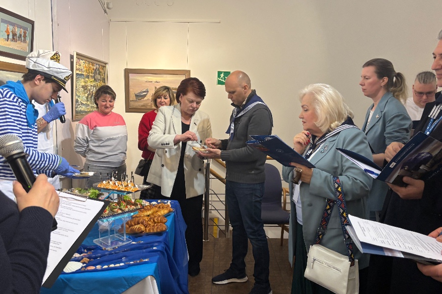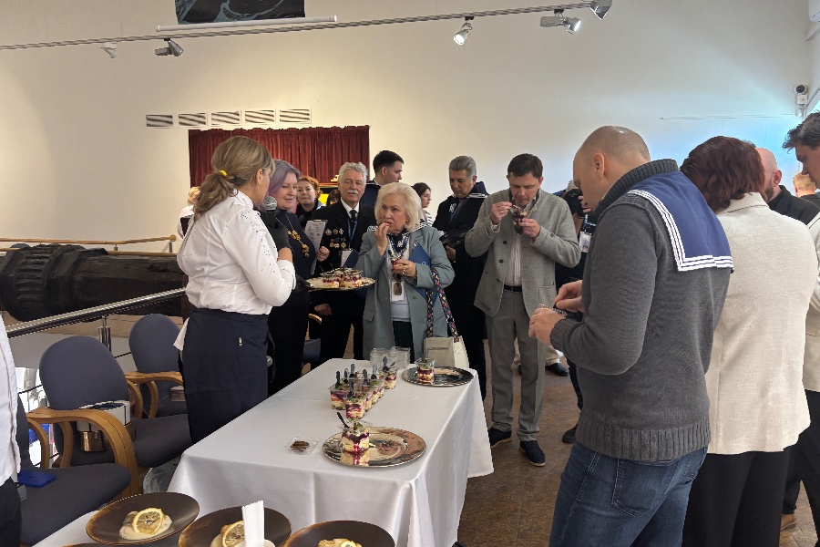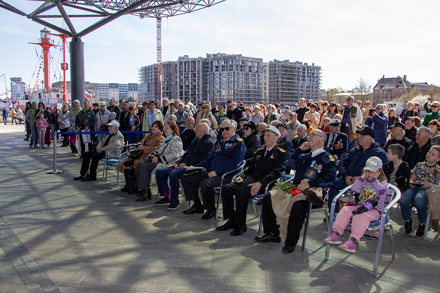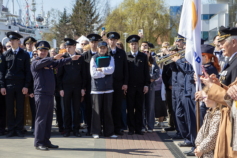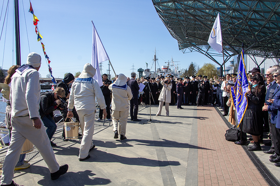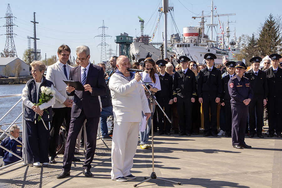 Тем временем в музей прибыла официальная делегация во главе с губернатором области Алексеем Беспрозванных, у которого по случаю праздника на плечах был гюйс. В своем выступлении он напомнил, что во время СССР Калининградская область производила десять процентов всей рыбной продукции страны и что сейчас каждая пятая банка рыбных консервов выпускается на предприятии региона.