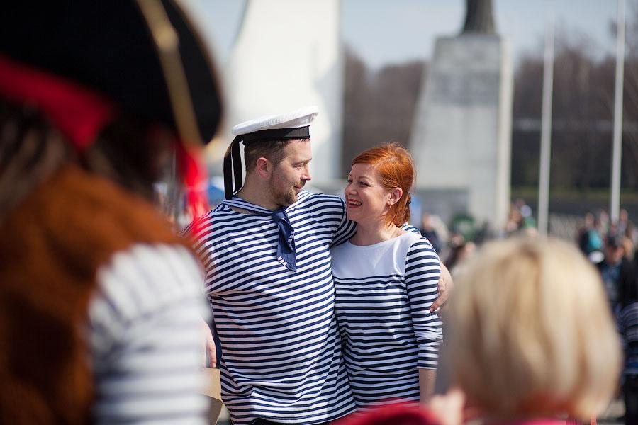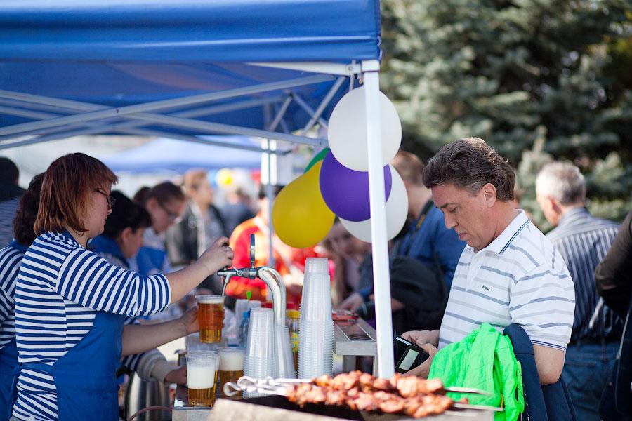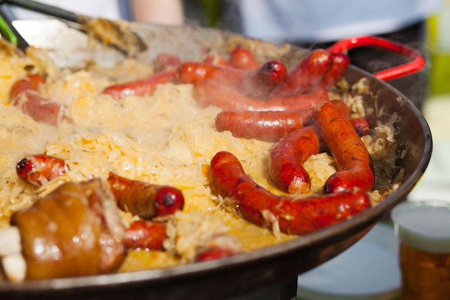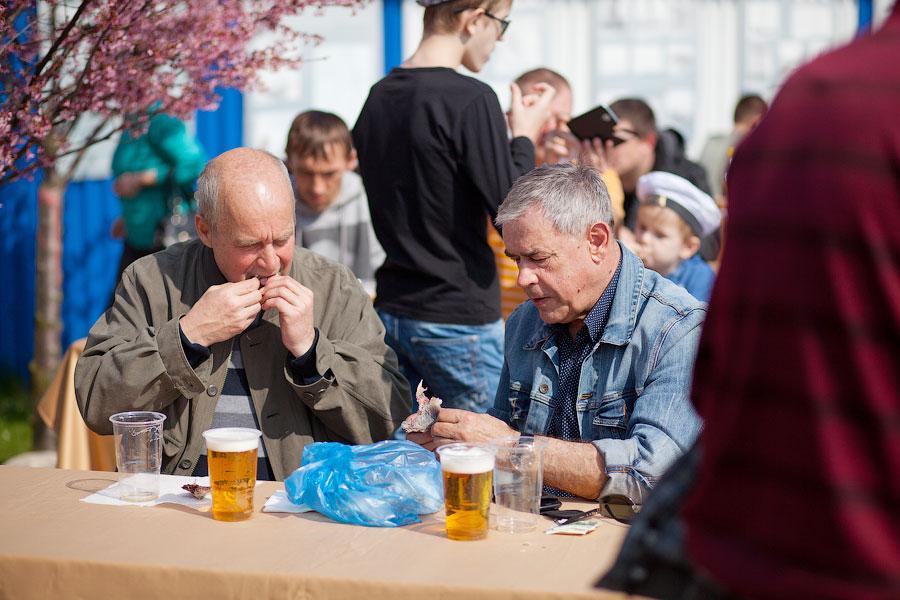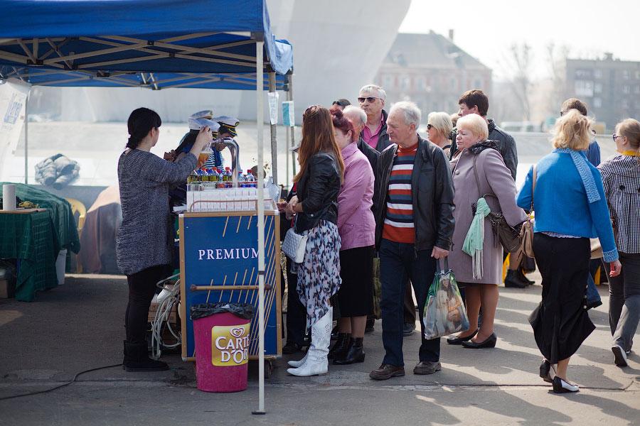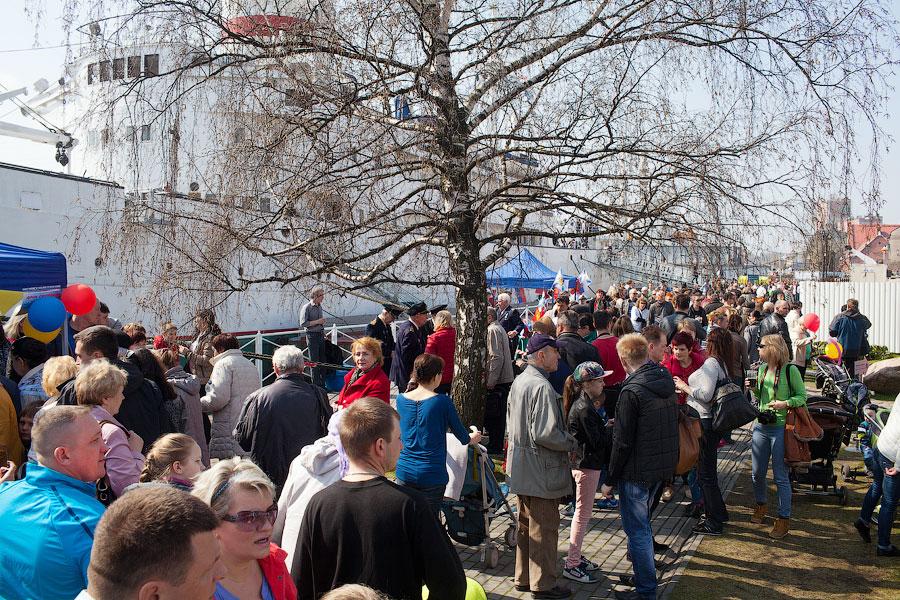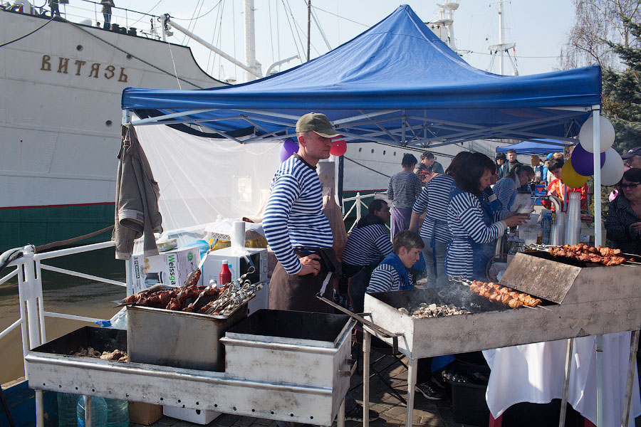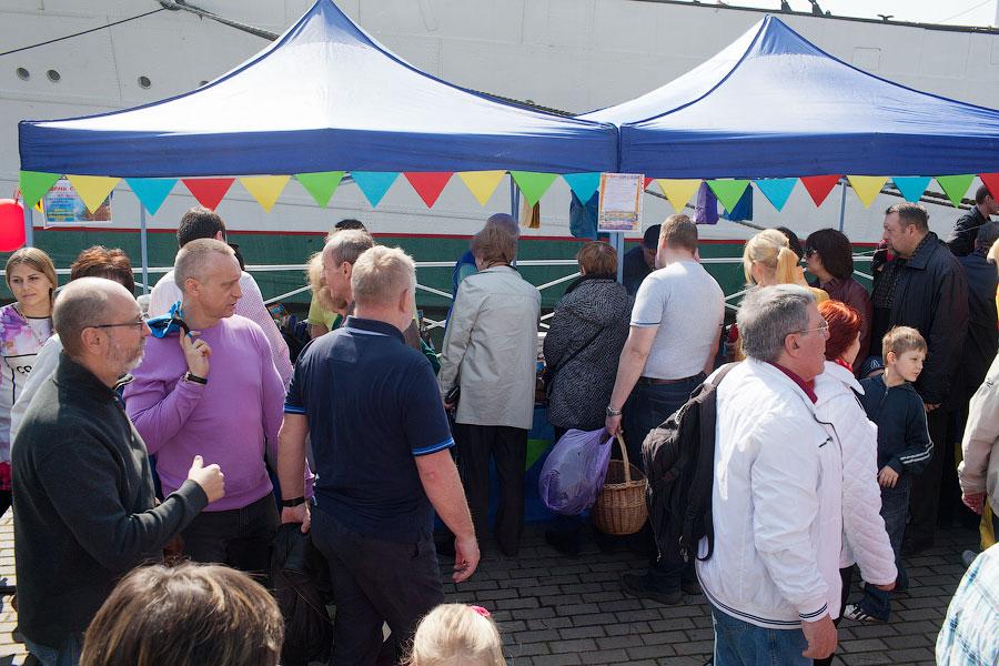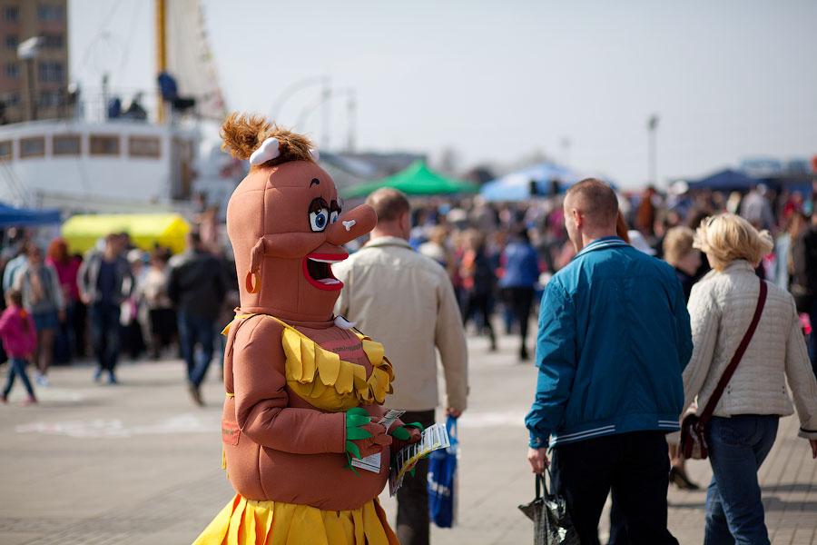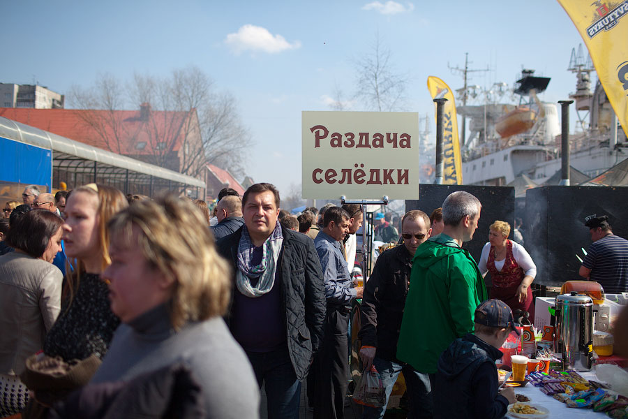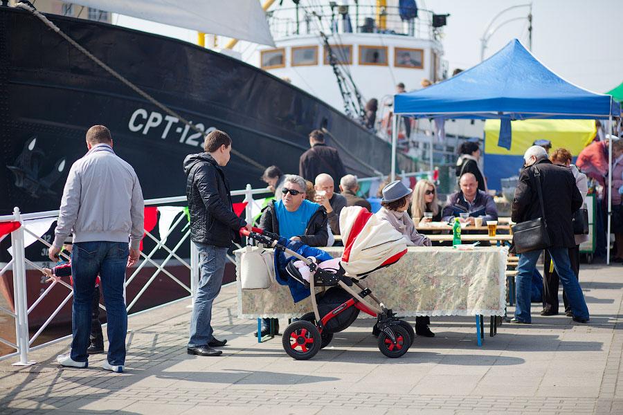 В-третьих, в этот раз организаторы решились привезти больше иностранных участников, чем когда-либо до этого. Порой казалось, будто силы разделились: калининградцы торговали янтарём и бесполезными сувенирами, а литовцам досталась вся движуха. Самой громкой по традиции стала делегация из Паланги: её члены успевали готовить, кричать в микрофон, водить хороводы, ставить хиты группы «Кино» и чествовать ветеранов Великой Отечественной войны. Местные кулинары вели себя скромнее: принимали деньги, отдавали товар.