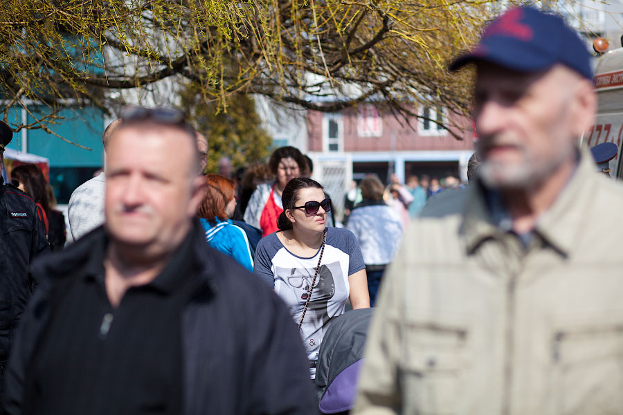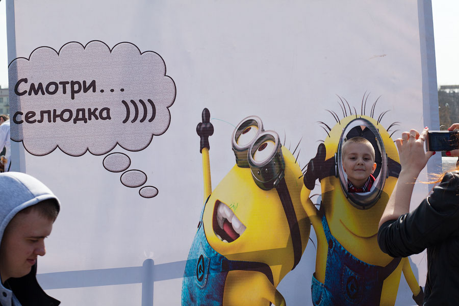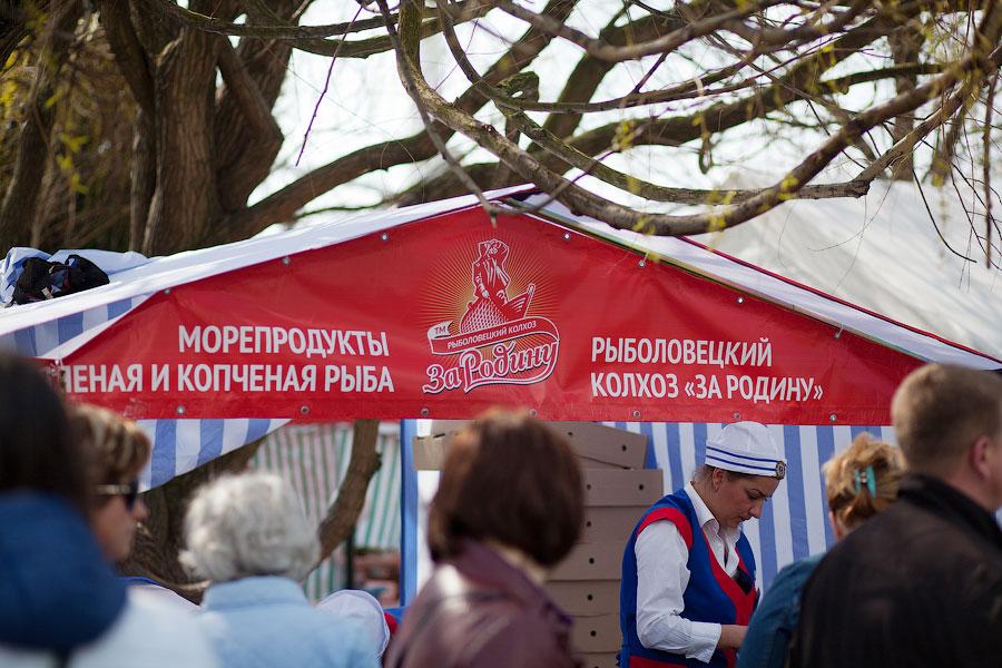 Самый спорный момент Дня селёдки — сцена с монотонным бубнежом ведущего и бесконечной «Балтийской уханой» — и та выглядела крайне прилично. Собственно самой авторской песни на ней было немного. То есть пару раз строки куплетов, смысл которых сводится к балтийскому берегу, волнам и туману, застать, конечно, удалось. Но в основном на сцене развлекались детские коллективы — милые и безобидные — и у всего этого находились благодарные зрители. Очень скромно — как подросток на первом свидании — вела себя палатка Военторга, разместившая на прилавках сувениры и одежду с «вежливыми людьми», ура-патриотичные подушки с танками и энергетические напитки по 48 рублей. Её продавец смущенно улыбался, будто сам не понимал, как здесь оказался. Пытался объяснять, что на подушках нарисованы никакие не военные действия, а обыкновенный танковый биатлон. Пожалуйста, всего за 300 рублей.