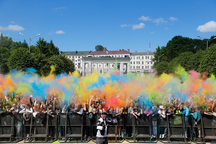 Одним из самых красочных (в прямом смысле слова) событий выходных в Калининграде стал «Фестиваль красок», состоявшийся в воскресенье, 12 июня, на стадионе «Балтика». Сотни подростков пришли сюда для того, чтобы как следует перепачкаться красками и пообниматься друг с другом под музыку от местных диджеев. Вместе с ними в облаках разноцветной пыли оказался и фотокорреспондент «Афиши Нового Калининграда.Ru».