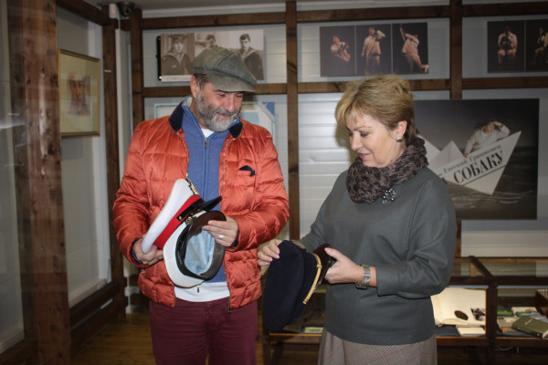 «Большой друг музея, драматург и актёр Евгений Гришковец сделал очередной приятный сюрприз музею, передав в его фонды три морских фуражки. Две из них являлись частью морской формы