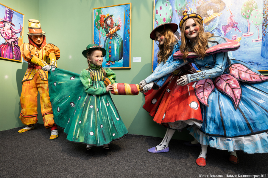 Главными героями «Новогоднего переполоха в театре кукол» стали сбежавшие из музыкальной шкатулки персонажи, которые танцуют на карамельных пуантах, витают в облаках сахарной ваты и стараются не заблудиться посреди леденцовой чащи. Как рассказала Лиза Анисимова, в основу «Живых картин» легли фотопортреты ее друзей, близких. На одной из работ можно увидеть и самого автора.