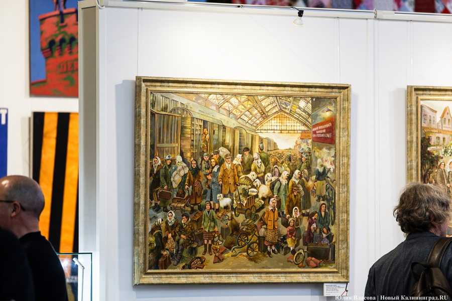 На выставке немало работ современных авторов, которые пытаются осмыслить тот путь, которые прошла эта земля за 80 лет. В центре экспозиции — триптих художника Тамары Василяускене «Переселенцы», состоящий из композиций «Прибытие. Первые шаги в неизвестность», «Весна 1946-го года. Дворик» и «На огонёк. Чаепитие. Семья».