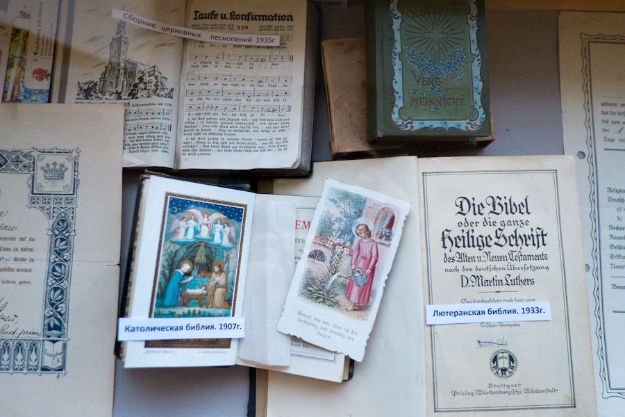 Кто-то с заднего ряда интересуется, не плачут ли немцы, когда приезжают сюда. «Нет, они мне руки подставляли, чтобы я их побила», — предвосхищает рассказ о наказаниях в народных школах Инесса. «Поначалу они очень часто сюда ездили. Но когда наблюдают, как всё зарастает бурьяном, — им очень тяжело становится. Но в музей они безусловно ездят с удовольствием. Дом Хайберманна сейчас пустует: там жили дедушка с бабушкой, очень хорошие люди; потом их не стало, а дом купили алкаши за материнский капитал. Посмотрели, сколько предстояло восстановить, и всё бросили. Cейчас там открыты окна и двери — дом пустой. Продать его они не могут, пока дети не вырастут — материнский капитал заморозили», — с горечью продолжает Инесса.