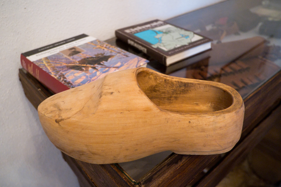 «Представьте, что вы дети. Это коридор школы — заявляет Инесса первым делом у входа в музей. «Дисциплина была очень строгая, никто не опаздывал. Сначала сюда заходили учащиеся 1 — 4 классов. Здесь раздевались и вешали одежду на крючки. Мы с точностью восстановили 46 штук таких креплений. С улицы дети приходили в деревянной обуви. Здесь её снимали, а в класс шли в носках — настолько чисто здесь было. На входе проверялась чистота. Затем заходили дети с 5 по 8 класс и следовали в другой класс. А мы, как будто маленькие, пройдём в первое помещение, присаживайтесь за парты», — продолжает экскурсию хозяйка.