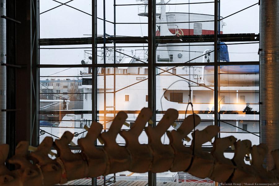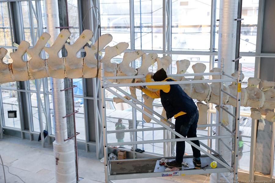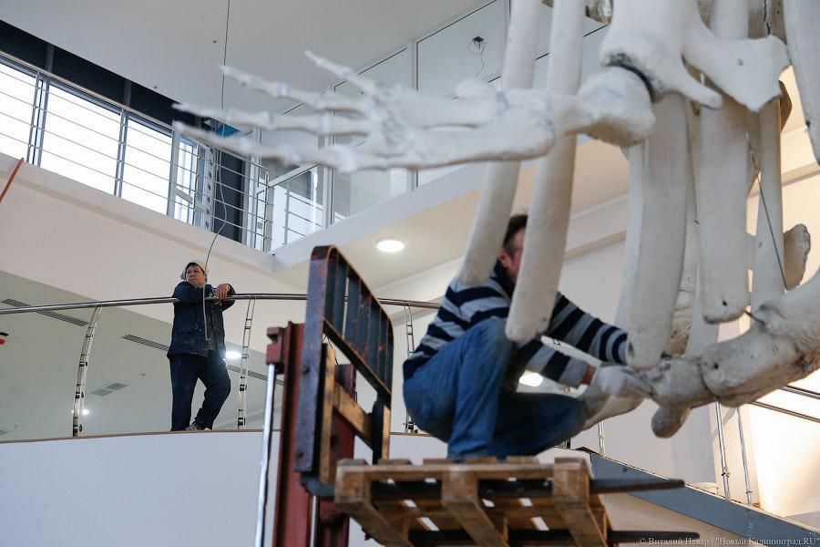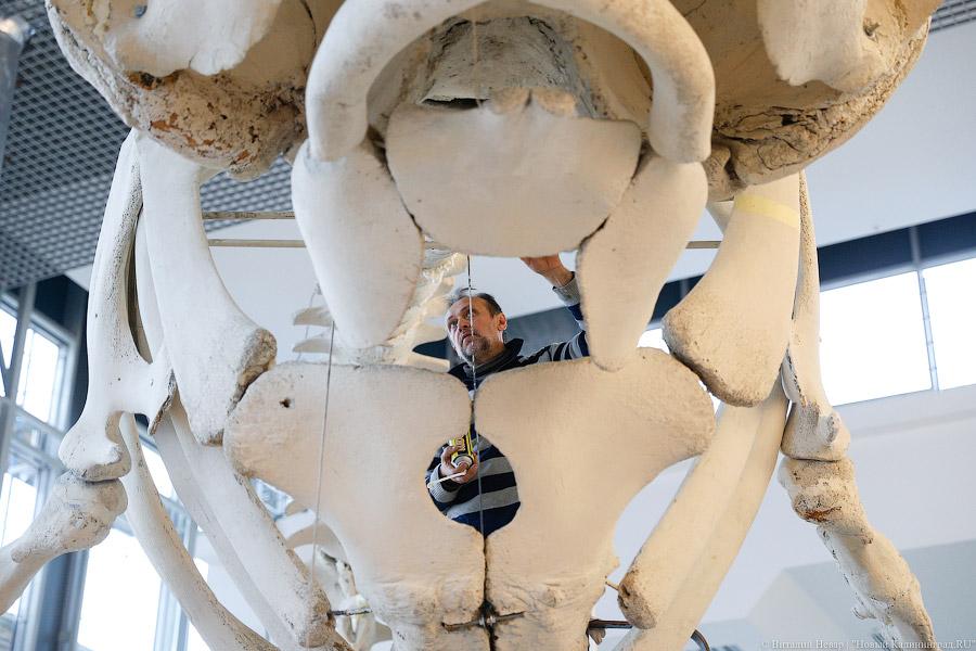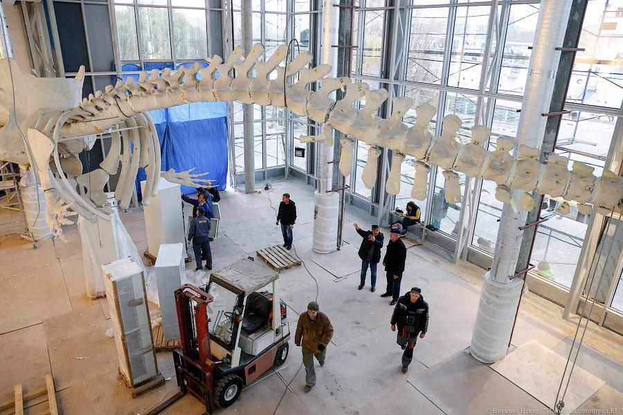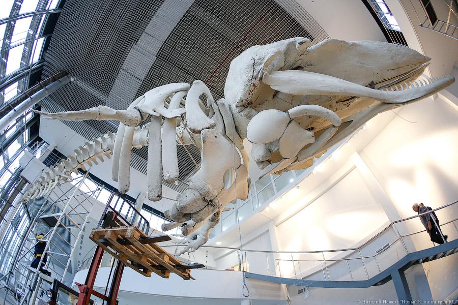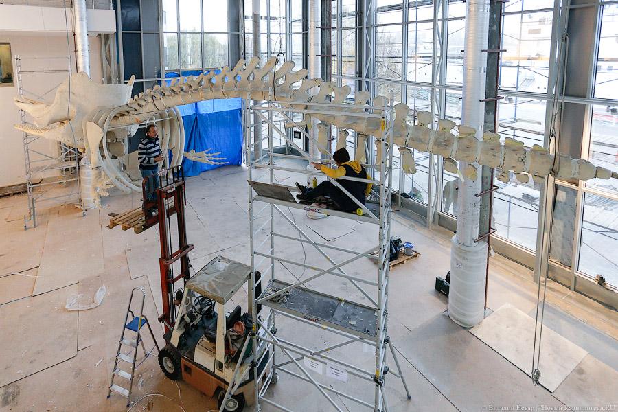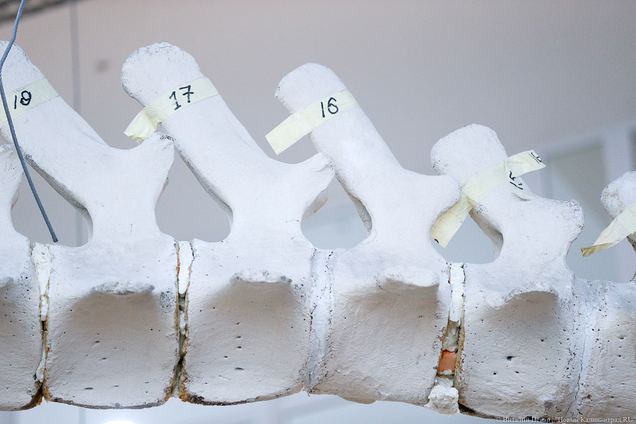 В новом корпусе Музея Мирового океана — Фондохранилище — приступили к монтажу скелета крупнейшего в России кашалота. Сотрудникам учреждения предстоит собрать чуть более ста костей в целый скелет морского гиганта весом 2,5 тонны и подвесить к потолку нового корпуса. После того как работа будет завершена, он станет частью экспозиции «Глубина».