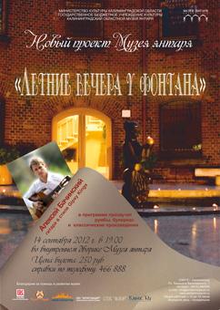 Музей янтаря продолжает проводить музыкальные вечера. 14 сентября в 19 часов калининградцев приглашают провести приятный вечер под аккомпанемент гитары, сообщили «Афише Нового Калининграда.Ru» в пресс-службе музея.