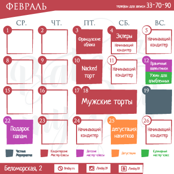 мастер-классе «Подарок папам», уж поверьте, такой сюрприз впечатлит даже сильную половину человечества. Кроме того, в феврале пройдут такие