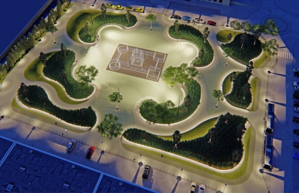 Новый сквер у Областного центра культуры молодежи (бывш. ДКМ) сняли с помощью квадрокоптера. Видео размещено на