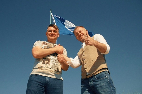 Глава администрации Янтарного Алексей Сергеевич Заливатский и министр культуры и туризма Андрей Викторович Ермак торжественно подняли флаг на одном из лучших пляжей России!