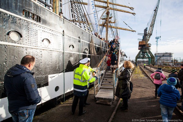 В настоящее время «Крузенштерн», вернувшийся из очередного рейса 28 июня, пришвартован в Калининградском морском рыбном порту. С 10 до 16 часов субботы борт парусника был открыт для свободного посещения.