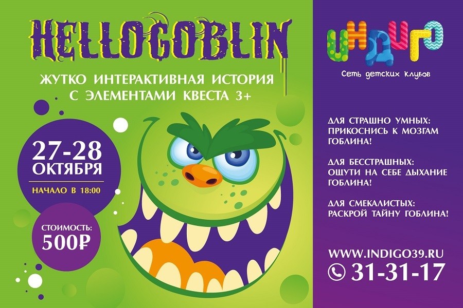 27 и 28 октября вы сможете принять участие в охоте за волшебным артефактом — сердцем гоблина. Всем отважным гостям нашей интерактивной истории представится возможность ощутить на себе дыхание гоблина, посмотреть на все происходящее его глазами и даже «пошевелить» его мозгами.