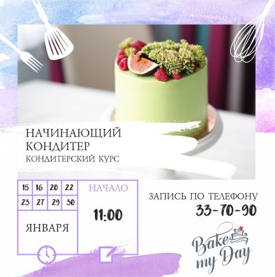Курс «Начинающий кондитер» *.com/bmday39?igshid=18e5nt4c3f1mh" rel="nofollow noopener" target="_blank">начнётся 15 января, в 11.00, занятия продолжатся 16, 20, 22, 23, 27, 29 и 30 января (время начала занятий в 11.00).