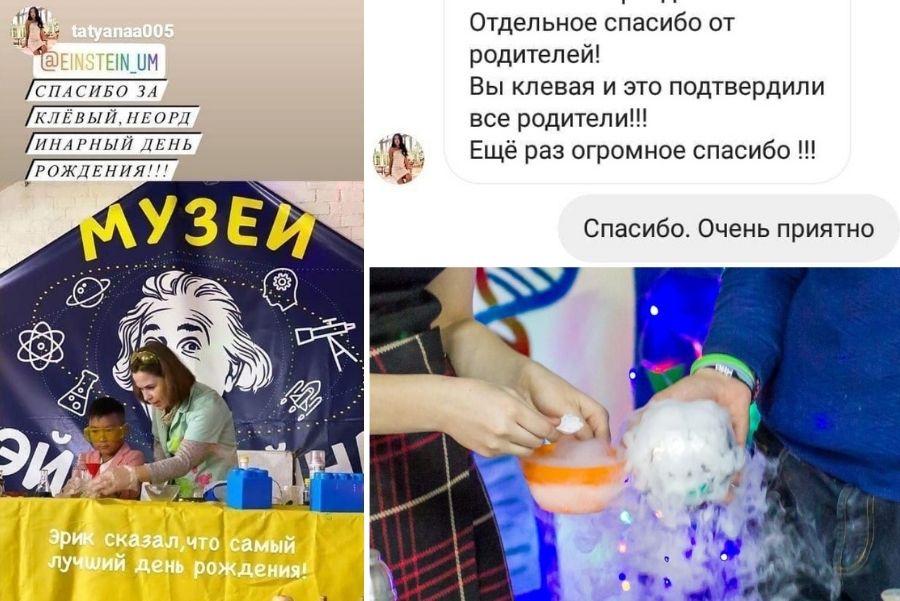 Самостоятельно проводя эксперименты и выступая в роли ассистентов, гости ощутят настоящий восторг естествоиспытателей. Зрелищные физико-химические опыты с очень подробным объяснением — наша главная гордость. А после программы уставших экспериментаторов ждет уютный теплый отдельный зал для традиционного чаепития. Все секреты организации закрытых мероприятий можно узнать по телефону 8-911-456-15-23 . Все мессенджеры. Или пишите нам с соцсетях Интаграмм и ВКонтакте.