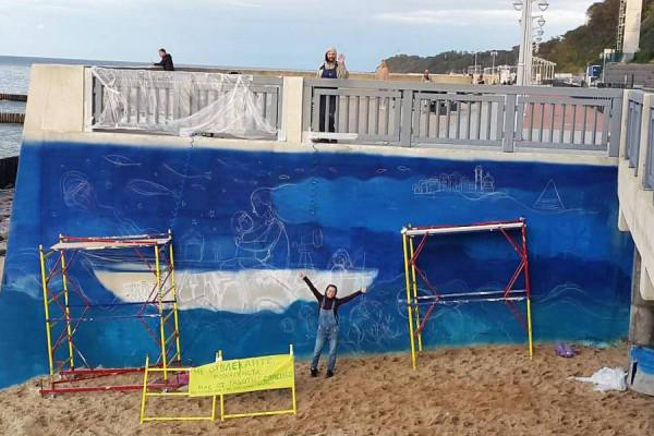 На новом променаде в Светлогорске создают граффити «Сны Раушена». Росписью стены около солнечных часов занимаются местные художники Серафима и Алексей Москаевы.