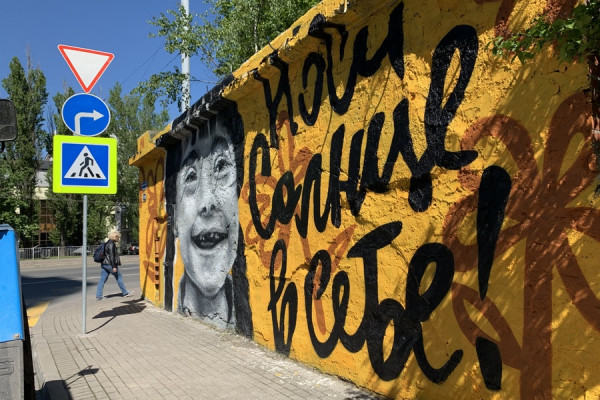 Калининградские художники Маргарита и Грачик Гущян посвятили граффити детям с синдромом Дауна. Рисунок находится на улице Пионерской.