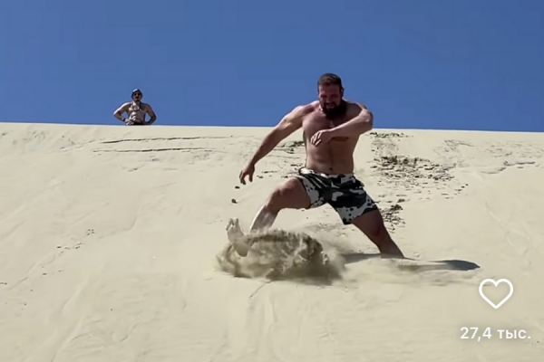 Российский пауэрлифтер Кирилл Сарычев записал видео, как он спускается к заливу по дюнам Куршской косы. Запись он опубликовал