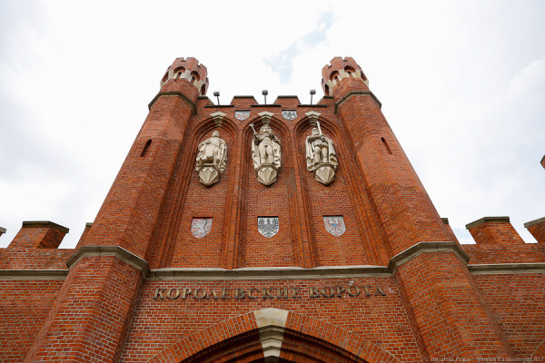 «Скульптуры государственных деятелей, тесно связанных с историей самого западного региона России (короля Чехии Оттокара II Пшемысла, короля Пруссии Фридриха I и герцога Альбрехта I Гогенцоллерна), как и сами возрожденные после долгих лет забвения Королевские ворота, в 2005 году стали символом празднования 750-летия города. Шестнадцать лет спустя, в год 75-летия Калининградской области, реставраторы вновь занялись восстановлением главных декоративных элементов ворот, — рассказали в музее. — Скульптуры изготовлены из желтого песчаника, представляют собой фигуры в полный рост, установлены в нишах на консолях из камня на уровне второго этажа. Под ними нанесены родовые гербы, исполненные в технике фрески по штукатурке в заглублениях в форме щитов, а выше фигур — гербы двух входивших в состав Пруссии земель, Самбии и Натангии».