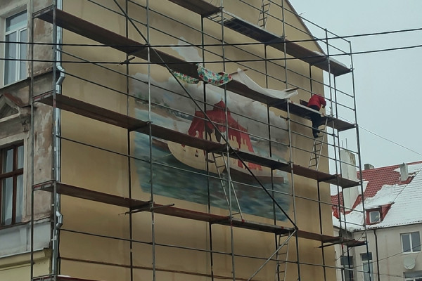 На фасаде одного из домов на улице Луначарского в Советске создают мурал, посвящённый Тильзитскому миру. Об этом сообщается на странице «Твой Советск» «Вконтакте».