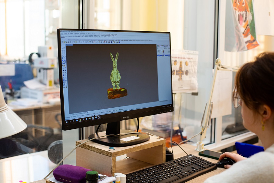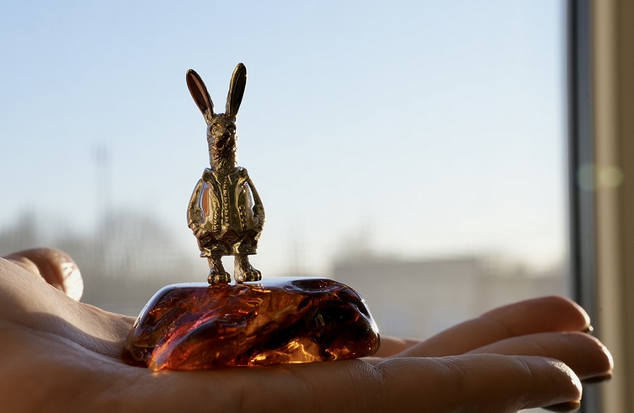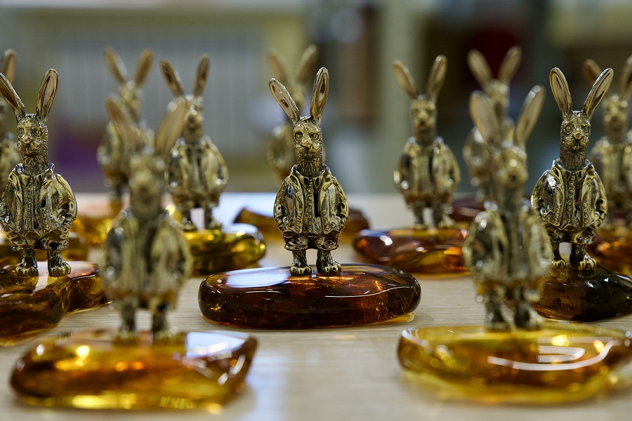 Сначала дизайнеры предприятия создают компьютерную модель сувенира. Затем фигурка отпечатывается из воска на 3D-принтере, заливается гипсом и отправляется в печь. Там под воздействием высокой температуры воск расплавляется и вытекает, а в получившуюся полость заливается металл. Завершающий этап — шлифовка, полировка и сборка, когда каждого зайца устанавливают на кусочек янтаря. Весь этот процесс показан на видео, которое также представил комбинат.