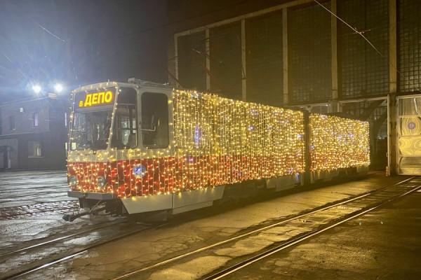 В Калининграде запустили новогодний трамвай. Он будет курсировать по маршруту №5 с 30 декабря по 8 января.