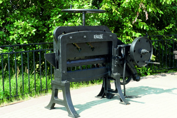 Старинная гильотина хранилась в одном из цехов предприятия. Перед тем, как она стала частью экспозиции, специалисты сняли резак, застопорили движущиеся части, обработали все детали антикоррозионным составом и покрасили.