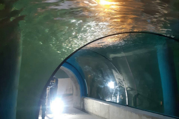 «На сегодняшний день в новом корпусе смонтировано 28 аквариумов. Уже более 20 аквариумов успешно прошли гидравлические испытания, а два самых больших объемом 706,4 и 224,6 куб. м специалисты тестируют в настоящее время. Всего в корпусе проверят 29 аквариумов, в которых будут обитать рыбы и другие морские обитатели из различных уголков Земли», — рассказали представители компании.