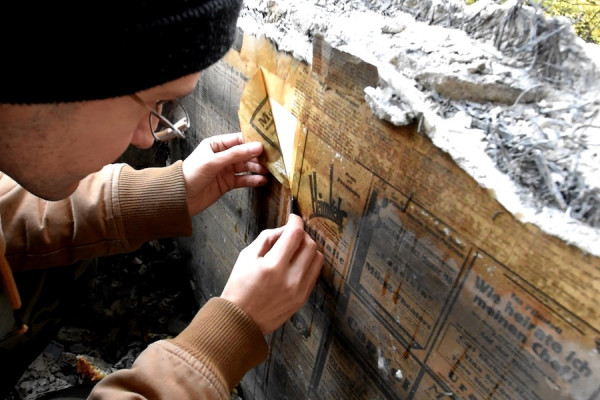 «Оказалось, что немалая площадь стен покрыта немецкими газетами, которые сохранились под слоем обоев и краски. Во времена, когда клеящие смеси были далеки от совершенства, а сами обои часто изготавливались из бумаги, в помощь шли газеты. Эта нехитрая газетная основа очень хорошо держала обои, в отличие от гладкой и скользкой от крахмального клея штукатурки. Такой способ экономил кучу времени и нервов, которые тратились уже на других этапах ремонта», — говорится в публикации движения «ВКонтакте».