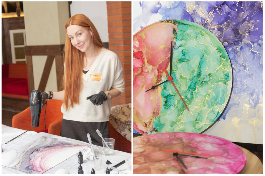 7 апреля с 18:00 в ресторане «Резиденция королей» (Невского, 10). Творим абстракции спиртовыми чернилами на больших полотнах и часах, 2800 рублей.