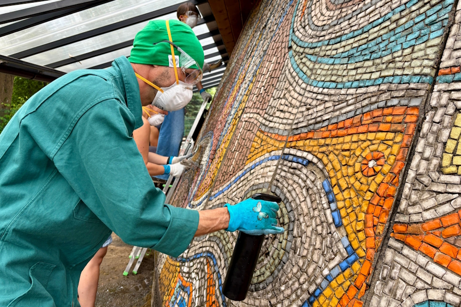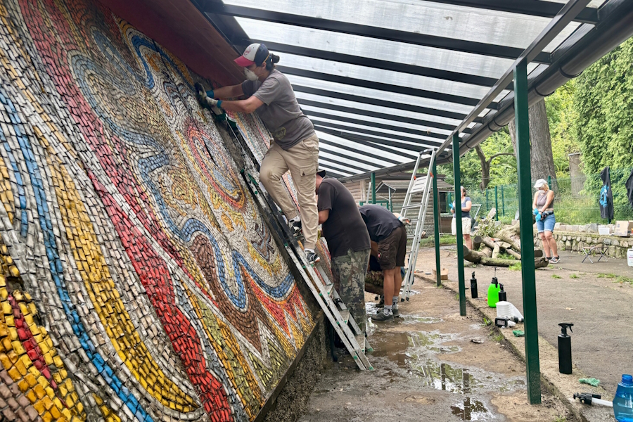 «Уже несколько лет подступаемся к реставрации и сохранению этого уникального памятника искусства. Два года назад пригласили в зоопарк известного художника-мозаичиста Павла Савельева. Его вердикт был однозначным: сохранить можно и нужно! Для более точной оценки Павлу нужно было расчистить многолетние наслоения пыли и грязи, чтобы увидеть мозаику во всех цветах», — говорится в сообщении.