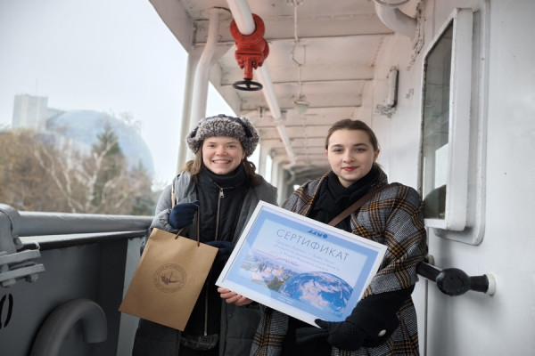 Генеральный директор Музея Мирового океана Денис Миронюк вручил гостье памятный сертификат двухмиллионного посетителя и абонемент на посещение объектов музея. После церемонии награждения капитан судна Владимир Фрадкин провел индивидуальную экскурсию по «Витязю», где рассказал о важных страницах в истории корабля науки и его вкладе в изучение Мирового океана.