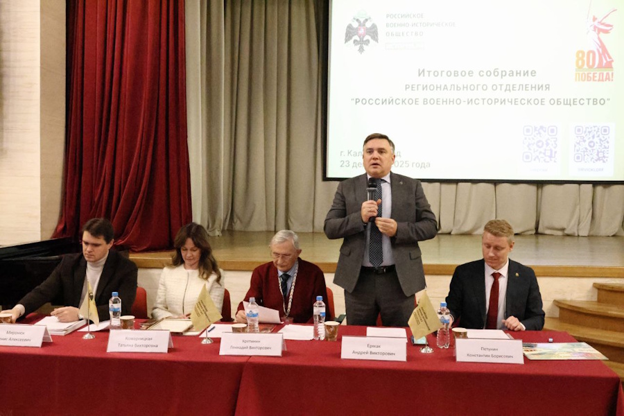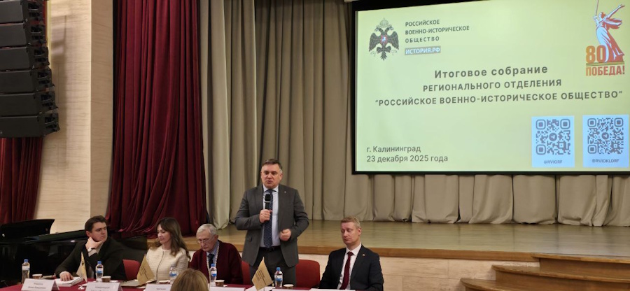 В Калининграде состоялось отчётное годовое собрание регионального отделения Российского военно-исторического общества. Заседание провёл председатель отделения, министр по культуре и туризму Калининградской области Андрей Ермак.